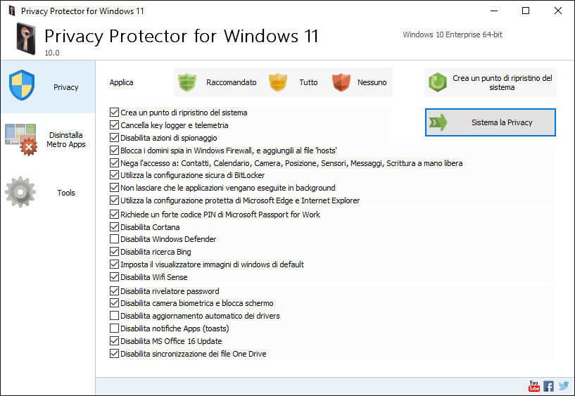 - Disabilita Keylogger, impedisce a Microsoft di raccogliere informazioni digitate sulla tua tastiera