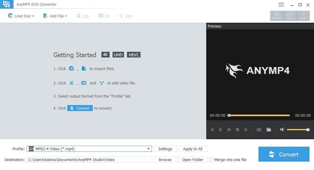 AnyMP4 DVD Converter è compatibile con i principali formati video, come DivX, Xvid, MPEG, MOV, MP4, WMV, AVI, OGG e include anche un tool di masterizzazione.
